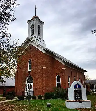 St. James Chapel, also known as the St. James United Methodist Church, is a historic Methodist chapel located at St. James, Phelps County, Missouri. It was built in 1868, and is a one-story red brick building with Gothic Revival and Romanesque Revival style design elements. It measures 40 feet by 60 feet, and has a gable roof. It features a bell tower topped by a dome.[2]: 2