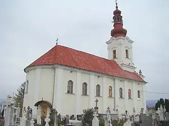 The church was built in Viennese Baroque style between 1770 and 1780. It is situated in the old city cemetery, surrounded by a stone wall where the defensive walls of the citadel once stood. The cemetery used to include a wooden church; a large cross marks its altar, and a slight elevation indicates where the entrance once stood.[1]