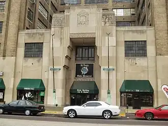 Ray's news and editorial changes helped to increase circulation. In 1927 he suspended publication of the Weekly Globe-Democrat, which had a circulation of 245,157 in 1925, because transportation facilities had improved so much that the daily could now serve the areas which once depended mostly on a weekly, and in 1929 the combined daily and Sunday circulation passed the half-million mark.[62] The “Flush Twenties” brought a big boost in advertising. So taxed were the Globe-Democrat facilities by its success that the paper started plans for a new building, visited big newspaper plants all across the country, and included the best features of them in the blueprints. Despite the financial crash of 1929, the company decided to proceed “to demonstrate its faith in the community.” Ground was broken for the structure, a state-of-the-art six-story building with two basements at 1133 Franklin Ave., in March 1930 and was completed in November 1931.[63]