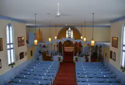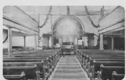 The interior of the church is notable for its painted pews and chancel screen.[3]