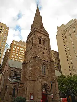 The church was founded in the mid-19th century as part of the Oxford Movement revival in the Anglican Church. The building was constructed by John Notman in the Gothic Revival style between 1847 and 1849, based on an original design by English architect Richard Cromwell Carpenter. The tower was designed by Notman, and completed in 1865 by George Hewitt.