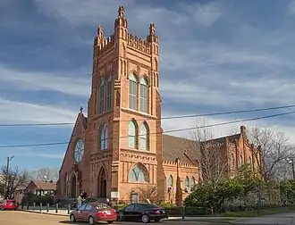 The Church of the Holy Cross (Episcopal), which housed St. Mark's until 1954, is a historic church at 875 Cotton Street in Shreveport, Louisiana, United States. The first services of the Episcopal church in Shreveport were celebrated by the Rt. Rev. Leonidas Polk, the Bishop of Louisiana in March 1839. That liturgy is considered the founding day of St. Mark's Church.[2] Prior to this church building, the church was located on Fannin Street. St. Mark's moved into a new church building at Fairfield Avenue and Rutherford Street in 1954. That church became the cathedral of the Diocese of Western Louisiana on July 7, 1990.[3][4]