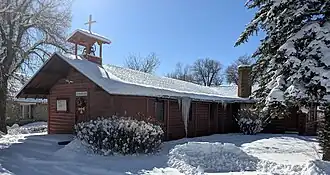 St. Michael's Mission is an Episcopal church mission established about 1887 in Fremont County, Wyoming to minister to the Arapaho and Shoshone of the Wind River Indian Reservation. It was founded by Reverend John Roberts with the permission of Shoshone Chief Washakie. The community of Ethete grew around the mission, given its name by Washakie's assent in the Shoshone language, ethete ("good" or "OK"). In 1900 a small log church was built about 3 miles (4.8 km) from the present location. In 1910 the mission received an endowment from Mrs. Baird Cooper and the new site was developed over the next seven years. In 1920 the original church was moved to the mission, enlarged, and named "The Church of Our Father's House.[2]