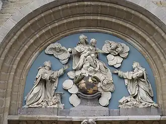 Tympanum sculpture of Our Lady of the Rosary by Jan Claudius de Cock