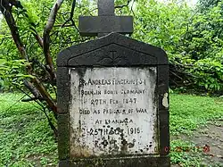 St. Xavier's College was founded on 2 January 1869 in Bombay by German Jesuits with only two students in attendance. The two students came from a group of six, who appeared for the university matriculation examination in 1868 from St. Mary's Institution. Swiss Jesuit Joseph Michael Willi (or Willy), the first principal of the college from 1869 to 1873, and three other Jesuits began lecturing and teaching at the college on 7 January 1869. The college was granted formal recognition by Bombay University on 30 January 1869. One student joined later in 1870. The first three students graduated in 1871.[1][10] From 1884 to 1910, under the patronage of Principal Frederick Dreckmann, the college began to develop rapidly.[11] The Blatter Herbarium was established in 1906 by the Swiss Jesuit priest Ethelbert Blatter and his associates.[12] The hostel was completed in 1909, while the east–west science wing, costing Rs. 200,000, was completed in 1912. The Government provided grants of Rs. 70,000 and Rs. 37,000 for the two additional buildings of the college. The college first admitted women in 1912.[11]
