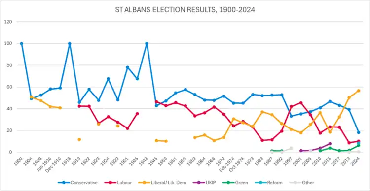 Results of all deposit-keeping candidates since 1983 in their bid be the MP for St Albans (UK House of Commons).