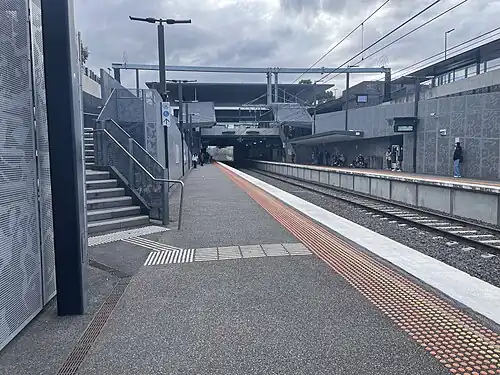 In late 2015, the Level Crossing Removal Authority commenced a grade separation project that replaced the Main Road level crossing with a road bridge over a lowered rail line. On 1 November 2016, the rebuilt station opened, with the overall project completed by mid-2017. Roughly a third of the station was directly below Main Road, with the remainder also lowered.[10][11][12]