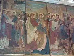 Painting of multiple miracles by Jesus on the north wall of the chancel by Alexander Gibbs, created in 1883/4.[5]