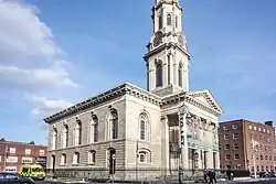St. George's Church is a former parish church in Dublin, Ireland. Designed by Francis Johnston, it is considered to be one of his finest works. The structure is located at Hardwicke Place, just north of the city centre, though when it was opened this was considered to be in Drumcondra.[3] The elegant spire, 200 feet (61.0 m) high, became a landmark of the north inner city.[4] Along with St Andrew's Church, Chennai, it is considered one of the finest stylistic "daughter" churches to London's St Martin-in-the-Fields.