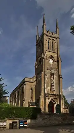 St John the Evangelist Church is a Roman Catholic parish church in Banbury, Oxfordshire, England. It was built from 1835 to 1838 in the Gothic Revival style with parts of it designed by Augustus Pugin. It is located on the corner of South Bar Street and Dashwood Road south of the town centre. It is a Grade II listed building.[3]