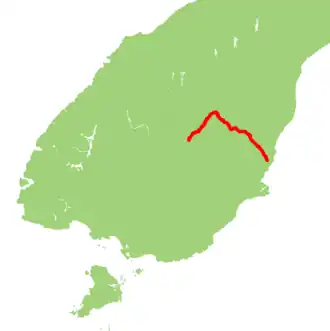 State Highway 85 (SH 85) is a South Island state highway in New Zealand, servicing the Maniototo Plains and the North and Central Otago regions of the South Island between the major settlements of Alexandra and Palmerston. It is wholly two lane and passes through some of the most extreme climatic regions in New Zealand. The highway is known colloquially as "The Pigroot".[1] The name comes from the Pigroot Hotel, the only building in the town of Pigroot, where travellors stayed during the 1870's to 1880's. Officially named the "Halfway House", but colloquially known as the Pigroot Hotel, it was run by the proprietors John and Isabella Freeland. Today, the Pigroot Creek Bridge which runs over the Shag River is the only reminder of this town.[2][3]