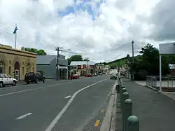 From Roxburgh, the highway turns southeastward, passing Ettrick, Raes Junction and Beaumont, where it turns away from the Clutha, before reaching Lawrence, close to the original strike in the Otago gold rush. From here, the highway continues past Waitahuna and the twisting Manuka Gorge, reaching the plain of the Tokomairaro River at Clarksville, three kilometres south of Milton.