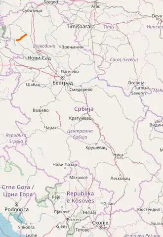 | 11002 | 0.302 km (0.188 mi) | 23.775 km (14.773 mi) | Odžaci (Ratkovo) – Odžaci (Kula) |