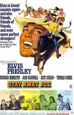 Stay Away, Joe is a 1968 American comedy western film with musical interludes, set in modern times and starring Elvis Presley, Burgess Meredith, Joan Blondell, Katy Jurado and Thomas Gomez. Directed by Peter Tewksbury, the film is based on the 1953 satirical farce novel of the same name by Dan Cushman. The film reached number 65 on the Variety weekly national box office chart in 1968.