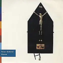 "Steam" is a song by English rock musician Peter Gabriel, released in January 1993 by Geffen Records as the second single from his sixth album, Us (1992). Gabriel, who wrote the song and produced it with Daniel Lanois, has said that the song is about a relationship in which the woman is sophisticated, bright, cultured, and knows everything about anything while the man knows nothing about anything; however, he does know about the woman, and she does not know much about herself.[3][4] On "Steam", Tony Levin played the bass part with set of drum sticks called funk fingers, which he attached to his digits to achieve a more percussive tone. Levin first used the technique on Gabriel's song "Big Time".[5]