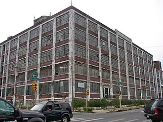 This historic complex consists of four buildings: the plant (1919, 1925–1927), the main office (c. 1919–1922), the chrome plating building (1951), and the lumber storage and garage building (1930). The plant is a five-story, U-shaped, reinforced concrete building that sits on a raised basement.