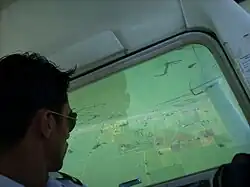 This applies to cockpits with two seats (usually pilot and co-pilot) arranged horizontally or abreast. Assuming the pilot performing the manoeuvre is positioned in the left seat (command seat) when a steep turn to the right is performed, the nose will appear to fall. Conversely, a steep turn to the left will make it seem like the nose is rising against the horizon. This is parallax error based purely on the pilot's vantage point and instinctively causes a pull back or a push down reaction on the control stick / column which is an incorrect reaction. A good way of eliminating the effect of this error is to keep an eye on the horizon and maintain the aircraft's position relative to the horizon line thereby allowing you to approximate the 45 degree angle the panel top creates against the horizon.