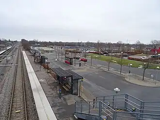 Stenløse station is an S-train railway station serving the district of Stenløse in the southeastern part of the satellite town of Ølstykke-Stenløse northwest of Copenhagen, Denmark.[1] It is located on the Frederikssund radial of the S-train network, a hybrid commuter rail and rapid transit system in and around Greater Copenhagen.[4] It is served regularly by trains on the C-line which have a journey time to central Copenhagen of around 40 minutes.[1] The station opened in 1882, and has been served by the S-train network since 1989.[2]
