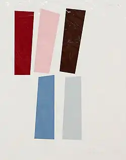 Edlich used paper in his early collages and both golden-hued Muntz metal and white Everdur Silicon Bronze in his reliefs.[11] An early reviewer noted that the reliefs had "straight-edge severity ameliorated by the color and sheen of the metals, changing according to the light."[11]