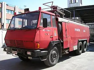 The Steyr 90 series is a cab over truck originally introduced in 1968, built by Steyr-Daimler-Puch AG in Steyr, Austria. It has a tilting cab and is of a distinct shape, which survived into the twenty-first century with China's Sinotruk. In 1978 the facelifted Steyr 91 replaced the 90, and it was in turn replaced by the redesigned Steyr 92 in 1986. Considering its comparatively low production numbers an unusually wide range of models and configurations were available, necessitated by Steyr's dominance of the Austrian truck market in the period - in 1980 about 35% of trucks on the roads there were made by Steyr.[1]