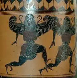 The Gorgons Stheno and Euryale chasing Perseus; Attic black-figure lekythos, Cabinet des Medailles 277 (550–500 BC)[1]