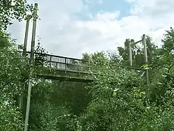 The huge wooden suspension bridge across a wooded ravine remains and can still be used. The complex network of paths is maze-like and, since there is no signage, very easy to get lost in. As of December 2017 the suspension bridge is closed off for repairs. It is currently being used by local wildlife photographers to capture photos of the Jay – a brightly coloured member of the crow family. The birds can be seen most days in winter.