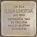 ELISKA LOHEITOVÁ BORN 1909 DEPORTED 1942 TO THERESIENSTADT 1943 TO AUSCHWITZ MURDERED |