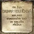 DAGMAR ROUBÍČKOVÁ BORN 1925 DEPORTED 1943 TO THERESIENSTADT SURVIVED |