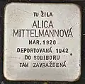 ALICA MITTELMANNOVÁ BORN 1926 DEPORTED 1942 TO SOBIBOR MURDERED THERE |