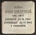 ANNA GRÄBEROVÁ BORN 1897 ARRESTED 17.11.1944 MURDERED 20.11.1944 IN KREMNICKA |