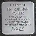 DR. ROTHMAN SÁNDOR BORN 1890 FORCED LABOUR MURDERED 16.10.1944 PUSZTAVÁM |