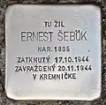 ERNEST ŠEBÖK BORN 1895 ARRESTED 17.10.1944 MURDERED 20.11.1944 IN KREMNICKA |