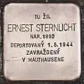 ERNEST STERNLICHT BORN 1890 DEPORTED 1.5.1944 MURDERED IN MAUTHAUSEN |