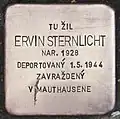 ERVIN STERNLICHT BORN 1928 DEPORTED 1.5.1944 MURDERED IN MAUTHAUSEN |