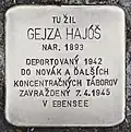 GEJZA HAJÓŠ BORN 1893 DEPORTED 1942 TO NOVÁKY AND OTHER CONCENTRATION CAMPS MURDERED 7.4.1945 IN EBENSEE |