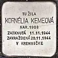 KORNÉLIA KEMEOVÁ BORN 1908 ARRESTED 11.11.1944 MURDERED 20.11.1944 IN KREMNICKA |