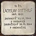 LADISLAV GOTTHILF BORN 1901 ARRESTED 10.11.1944 IN HARMANEC MURDERED 20.11.1944 IN KREMNICKA |