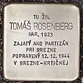 Dolná 137/4 | Tomáš Rosenberg was born in 1923 or 1924 in Banská Bystrica. His parents were Marcel Rosenberg and Ilona née Tyroler. He had a younger brother, Teodor (see above). He was a student and single. Both brothers were arrested, interned and shot by the Nazi regime on 12 December 1944 in Brezno.[18] |