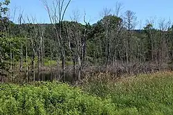 The valley of Stony Brook is forested and largely undeveloped. Although there is agricultural land upstream of the valley and on both sides of it and a housing development located on one side of the valley,[6] there is no road going through the valley, and the Columbia County Natural Heritage Inventory strongly discourages the construction of one, stating that it would "be the most destructive action against this Exceptional Value Waters stream.".[6]