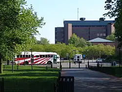 The East Campus is separated from the main campus by Nicolls Road (County Road 97). It is home to the Stony Brook University Hospital and the Health Sciences Center. Stony Brook University Hospital, completed in 1980, is Suffolk County's only tertiary hospital and Level 1 Trauma Center, and the only academic medical center in Suffolk County—larger also than any in Nassau County.[71] The hospital is the largest in Suffolk County, and the attached Health Sciences Center (HSC) and Basic Science Tower (BST) houses numerous laboratories, the School of Medicine (1972), the School of Nursing (1970), the School of Health Professions (1970) and the School of Social Welfare (1971). The area also includes the Ambulatory Surgery Center and the Center for Outpatient Services.[72]