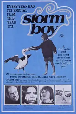 Storm Boy is a 1976 Australian drama film based on the 1964 book of the same name by Colin Thiele, about a lonely boy and his pet pelicans living in a coastal wilderness with his reclusive father. It was the third feature film made by the South Australian Film Corporation, and is a highlight of the New Wave of Australian Cinema from the 1970s. The film was financed by SAFC, Seven Network and the Australian Film Commission.