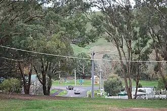 Looking towards the main intersection at Strath Creek from Pioneer Park