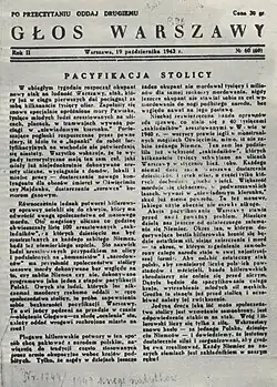 - ^ Biuletyn Informacyjny of 28 October 1943 reported: After the initial days of lost psychological balance, Polish society is returning to a firm determination. The magnificent spontaneous gestures of reverence by the capital at the sites of street executions will forever remain marvelous proofs of the compassionate, heroic spirit of the city's people (Szarota (2010, p. 462)).