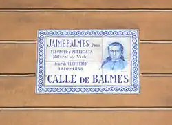 Influenced by romantic historiography, Balaguer introduced numerous Catalanist names, opening the door for numerous Catalan towns that followed suit.[75] He created several streets named after territories linked to the Crown of Aragon: Valencia, Mallorca, Aragon, Provence, Roussillon, Naples, Calabria, Corsica, Sicily, and Sardinia; institutions such as the Catalan Courts, the Catalan Parliament, the Diputation, or the Council of One Hundred; characters from politics, literature or the Catalan arts: Balmes, Aribau, Muntaner, Casanova, Pau Claris, Roger de Flor, Villarroel, Roger de Lauria, Count Borrell, Count of Urgel, Entenza, Ausiàs March, Llull, Llança, Alí Bey, Manso, Pallars, Pujades, Rocafort, Tamarit, Viladomat, Vilanova or Vilamarí; battles and historical events, such as Bailén, Lepanto, Bruc or Caspe.[76] He also dedicated streets to Industry, the Navy and Commerce, and to the Catalan cities of Gerona and Tarragona.[77] There were some modifications to his initial proposal, such as the street of the university, which in 1916 was changed to Enrique Granados after the composer's death; and some names that finally did not materialize, such as Atenas, Desclot, Barceló, Capmany, La Coronela and Llobregat.[78]