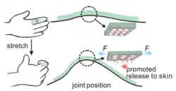 - ^ a b c Di, Jin; Yao, Shanshan; Ye, Yanqi; Cui, Zheng; Yu, Jicheng; Ghosh, Tushar K.; Zhu, Yong; Gu, Zhen (2015). "Stretch-triggered drug delivery from wearable elastomer films containing therapeutic depots". ACS Nano. 9 (9): 9407–9415. doi:10.1021/acsnano.5b03975. PMID 26258579.