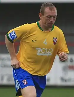 He rejoined former club Durham City, newly promoted into the Northern Premier League Premier Division, in June 2009 along with Brayson.[65] After Durham's financial problems led to all players being made available for transfer, he signed for Northern League Division One club Bedlington Terriers in September 2009, making a winning debut in the first qualifying round of the FA Vase.[66][67] He was later appointed captain.[68] He suffered a cruciate ligament injury before signing for Newcastle Benfield of the Northern League Division One in 2013.[69][70] He returned to playing after a year out injured, and signed for Northern League Division One club Ashington on 3 August 2014.[69][71]