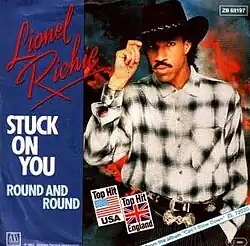 "Stuck on You" is a song written and originally recorded by American singer and songwriter Lionel Richie. It was the fourth single released from his second studio album, Can't Slow Down, released in June 1984, by Motown,[1] and achieved chart success, particularly in the US and the UK, where it peaked at number three and number 12, respectively. "Stuck on You" reached number one on the Adult Contemporary chart, Richie's seventh chart topper.[2]