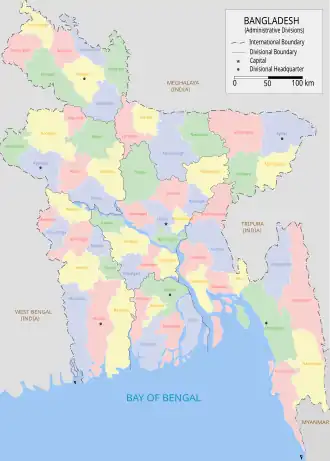 Bangladesh is divided into eight major administrative divisions. Each division is named after the major city within its jurisdiction that serves as the administrative capital of that division: