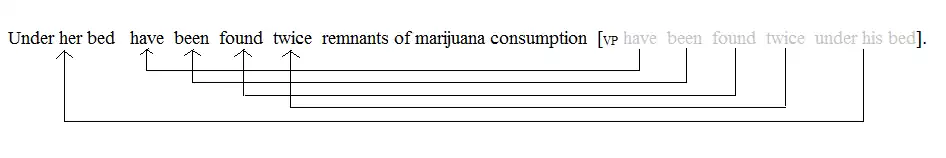 The unseen mechanisms must perform an even greater job for the marijuana-example above. That sentence (sentence c in the previous section) would necessitate at least five instances of movement/copying in order to maintain the presence of an underlying finite VP constituent.