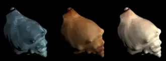To improve rendering efficiency, many real-time computer graphics algorithms only compute the reflectance at the *surface* of an object. In reality, many materials are slightly translucent: light enters the surface; is absorbed, scattered and re-emitted – potentially at a different point. Skin is a good case in point; only about 6% of reflectance is direct, 94% is from subsurface scattering.[2] An inherent property of semitransparent materials is absorption. The further through the material light travels, the greater the proportion absorbed. To simulate this effect, a measure of the distance the light has traveled through the material must be obtained.
